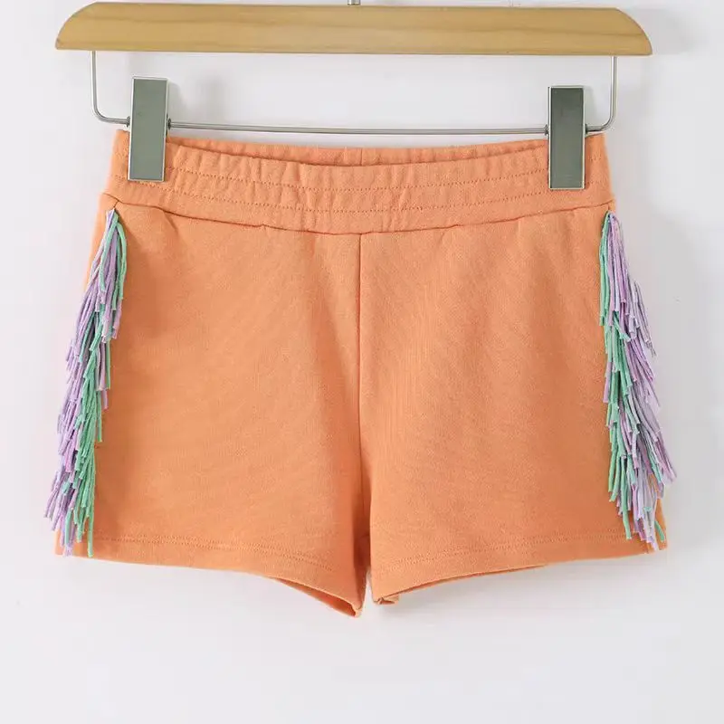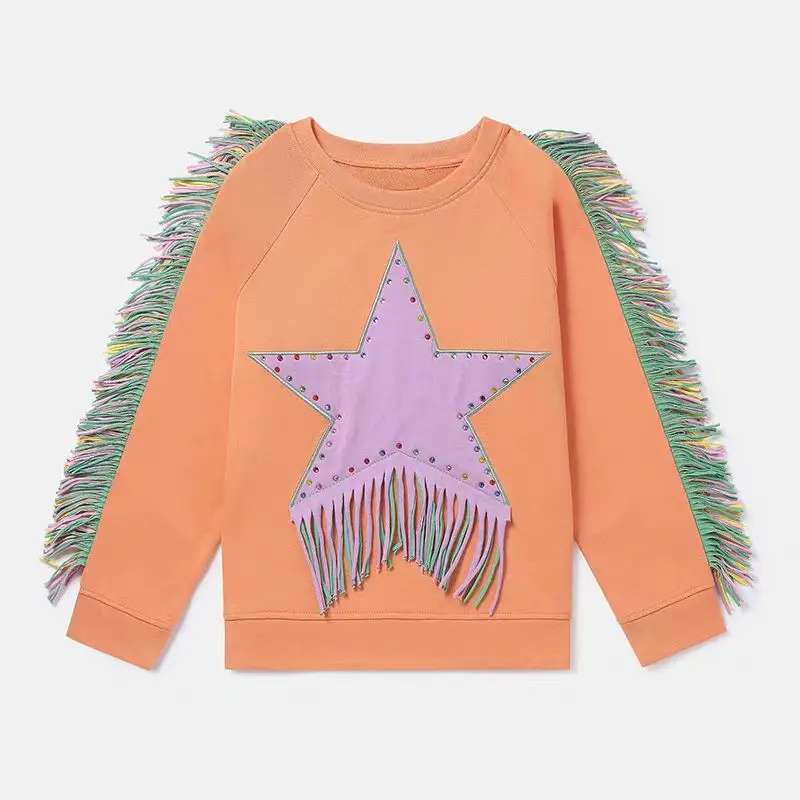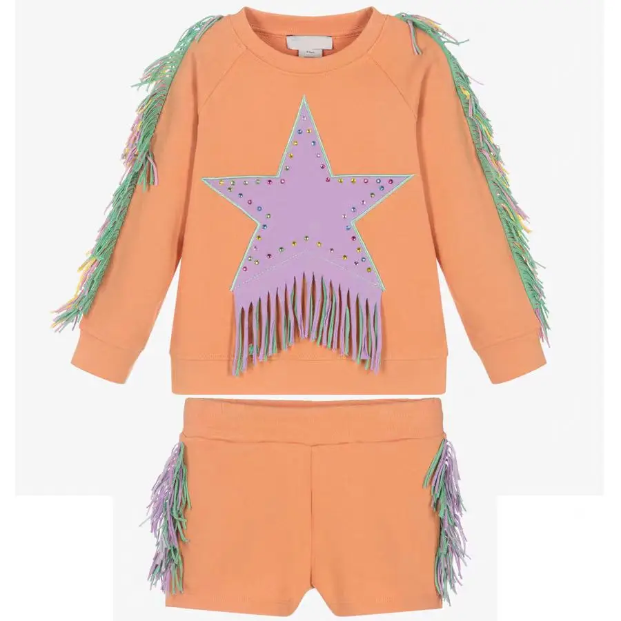 Wholesale Autumn Kids Terry Set Tassel Ironed Crystal Sweatshirt and Shorts Girls Clothing Suit